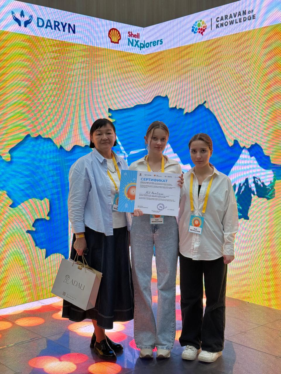 На республиканский конкурс «Жасыл ұрпақ бәйгесі», организованный NXplorers совместно с партнёрами проекта, из 104 команд страны были отобраны всего 20 лучших. В их число вошла команда КГУ «Школа-лицей №7» — "H₂O Revolution", руководитель Шалаганова Г.К. Команда прошла все этапы конкурса, успешно преодолев отбор, обучение, разработку решения и подготовку макета. На финальном этапе учащиеся представили свой проект в номинации «Ең үздік макет» и заняли II место среди сильнейших проектов Казахстана. Участники команды (9 «Г» класс): Мусаева Милена, Савчук Анастасия, Туменбаева Диана. Ребята продемонстрировали системное мышление, творческий подход и высокие технические навыки, создав масштабируемое экологическое решение, актуальное для практического применения.