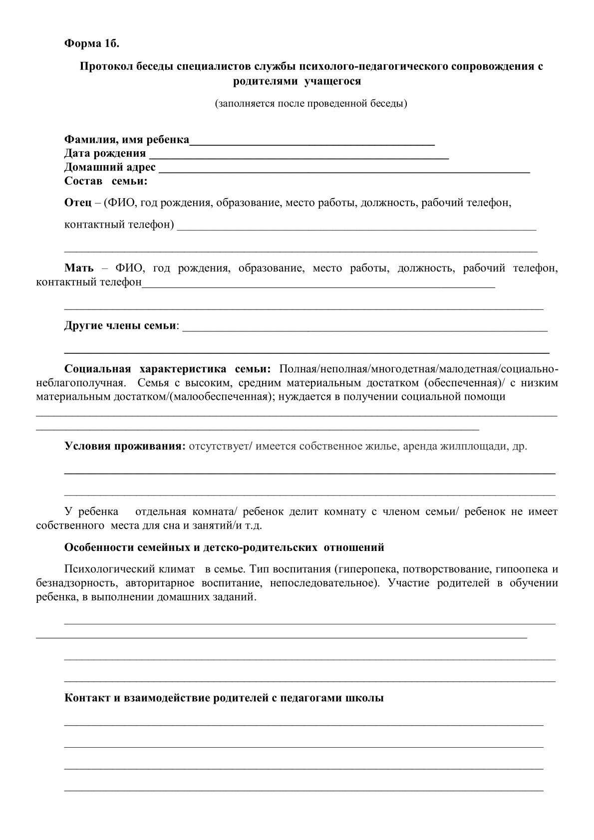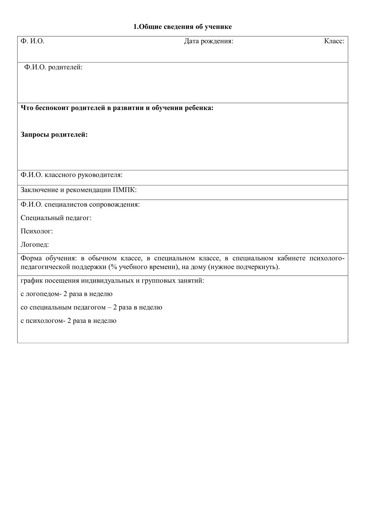» » Документация классного руководителя ученика с ООП