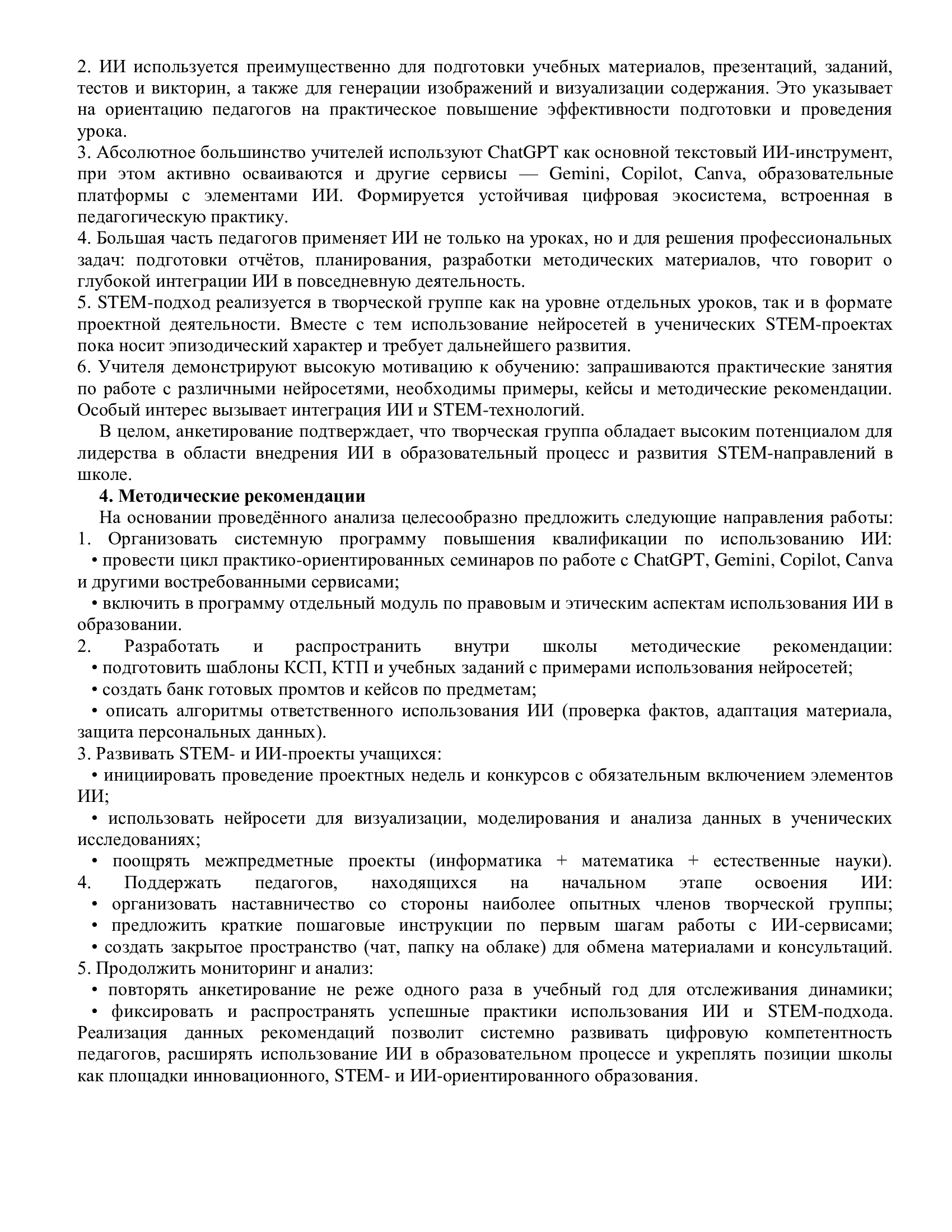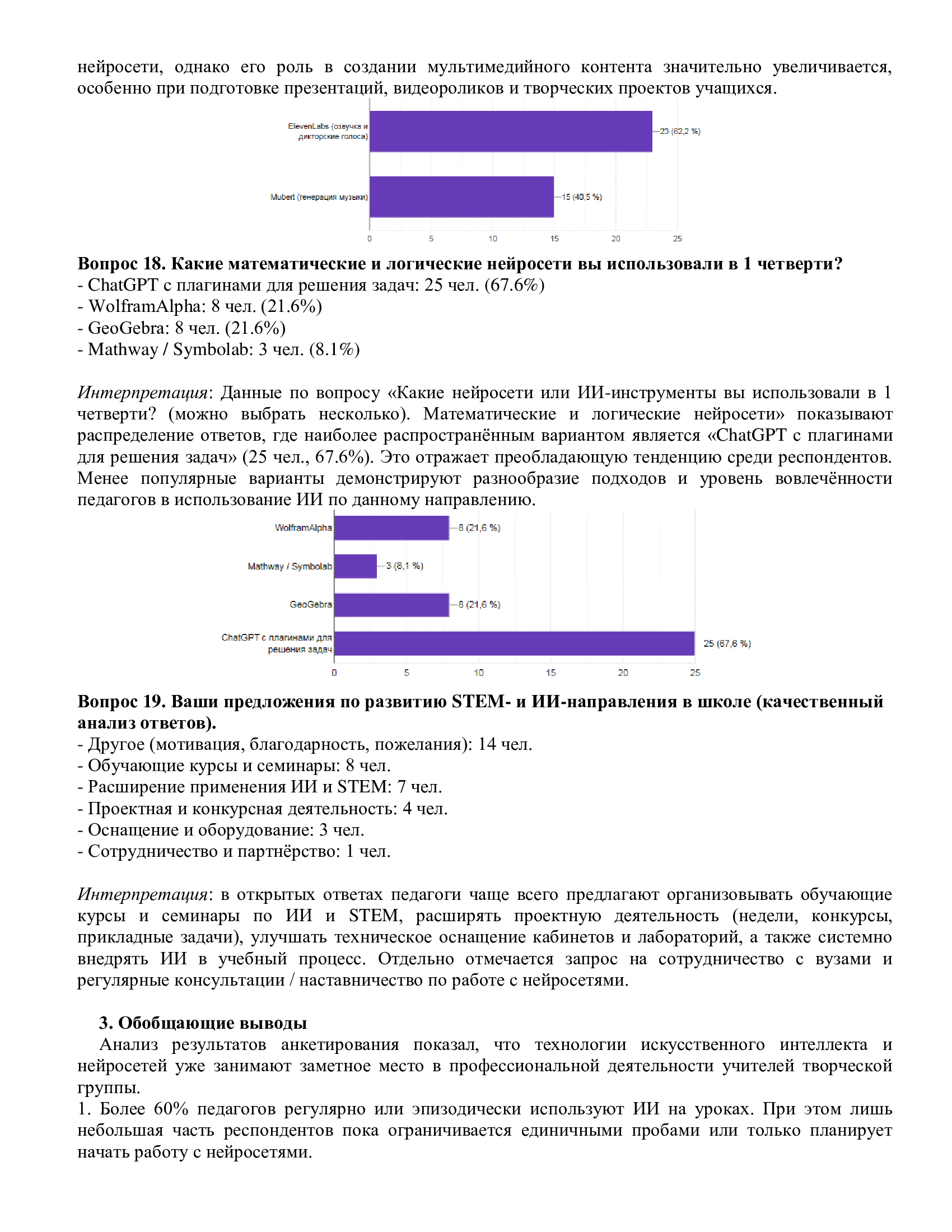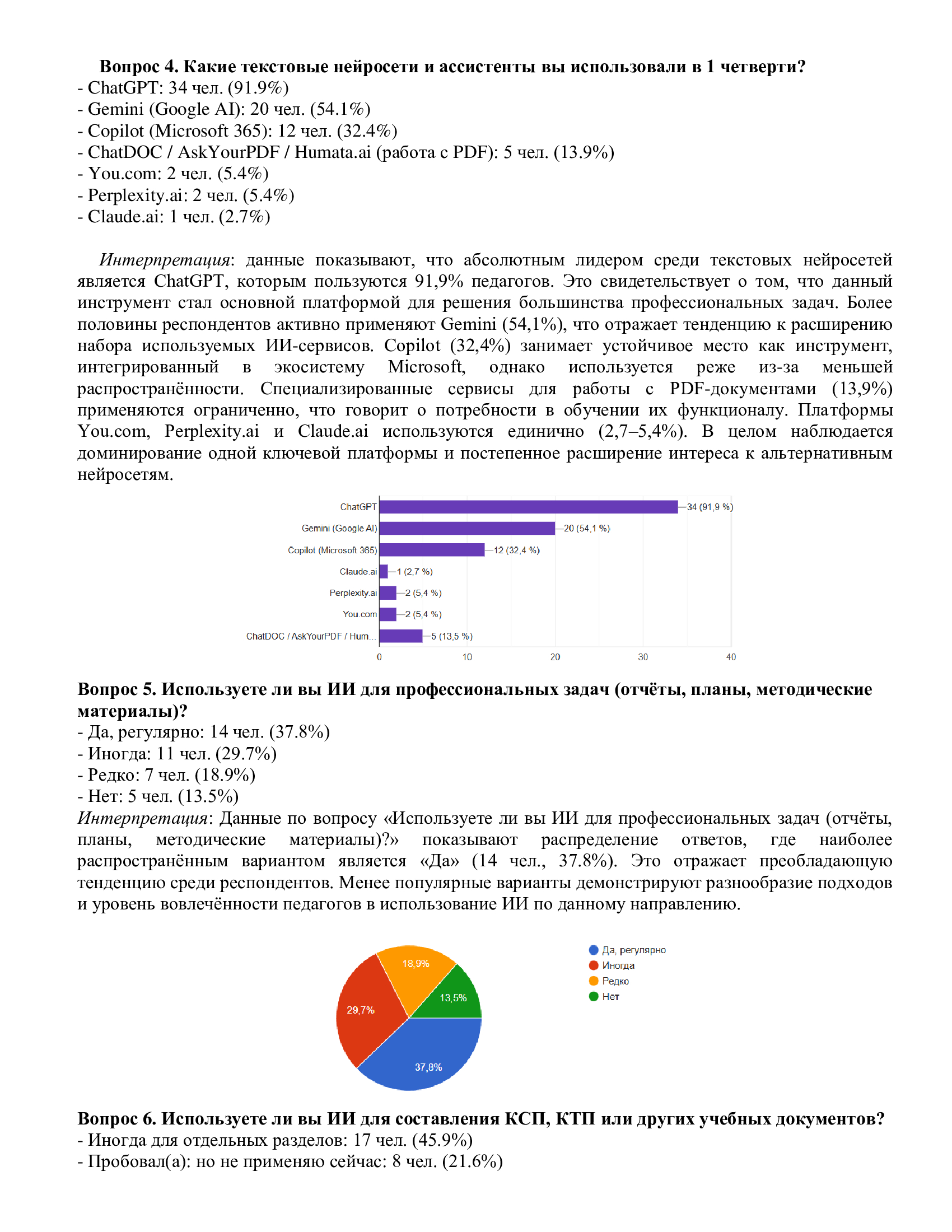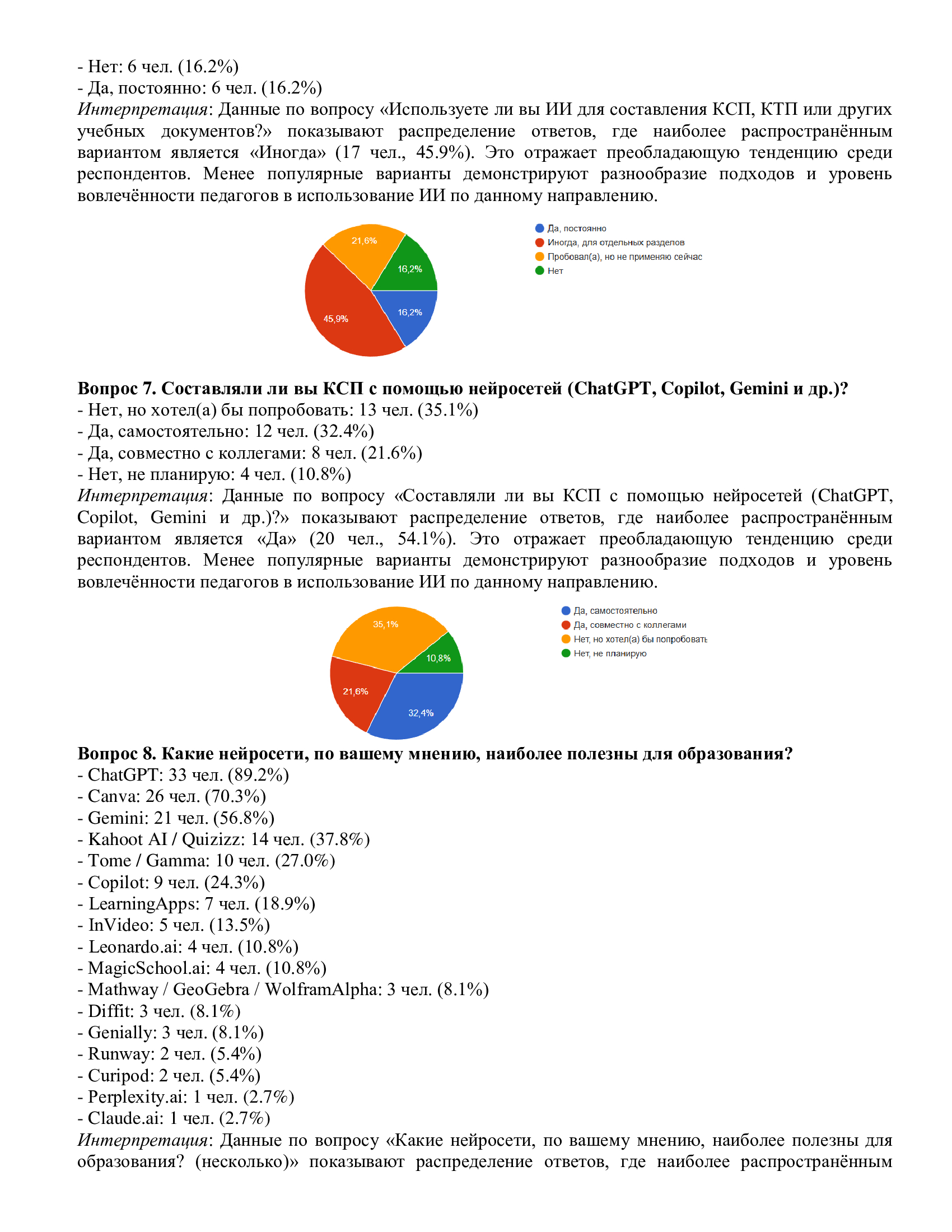 Аналитический отчёт по результатам анкетирования «Использование искусственного интеллекта и нейросетей в образовательном процессе» (1 четверть 2025 учебного года)